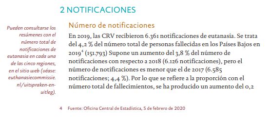 Y el ejemplo es que alrededor de 6000 personas murieron gracias a estas leyes en 2019 no sólo en los Países Bajos (alrededor de un 4% de los fallecimientos totales) sino también en Canadá (alrededor de un 2% de las muertes totales) donde está muy desarrollado los cuidados paliativos. Es más, el 90% de las personas que fallecieron en Canadá gracias a esta ley dispusieron de cuidados paliativos si quisieron, lo cual confirma también lo tonto que es este debate de eutanasia vs cuidados paliativos.